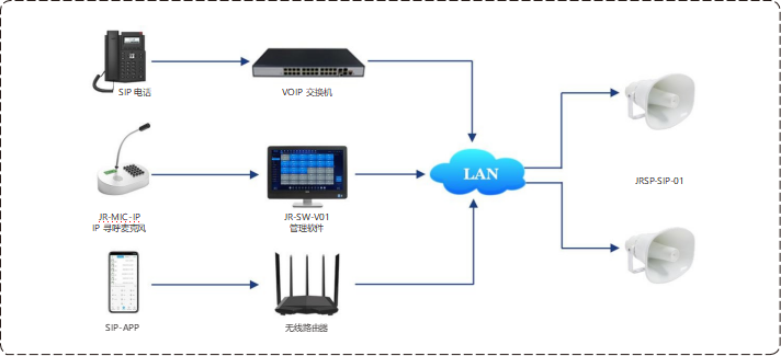 1. 支持SIP协议,可独立作为SIP终端使用,方便集成到主流VOIP系统中,用于接收来自SIP电话或SIP软电话的呼叫。同时,该设备还支持接收来自J&R管理软件、IP寻呼麦克风及SIP应用程序的广播。